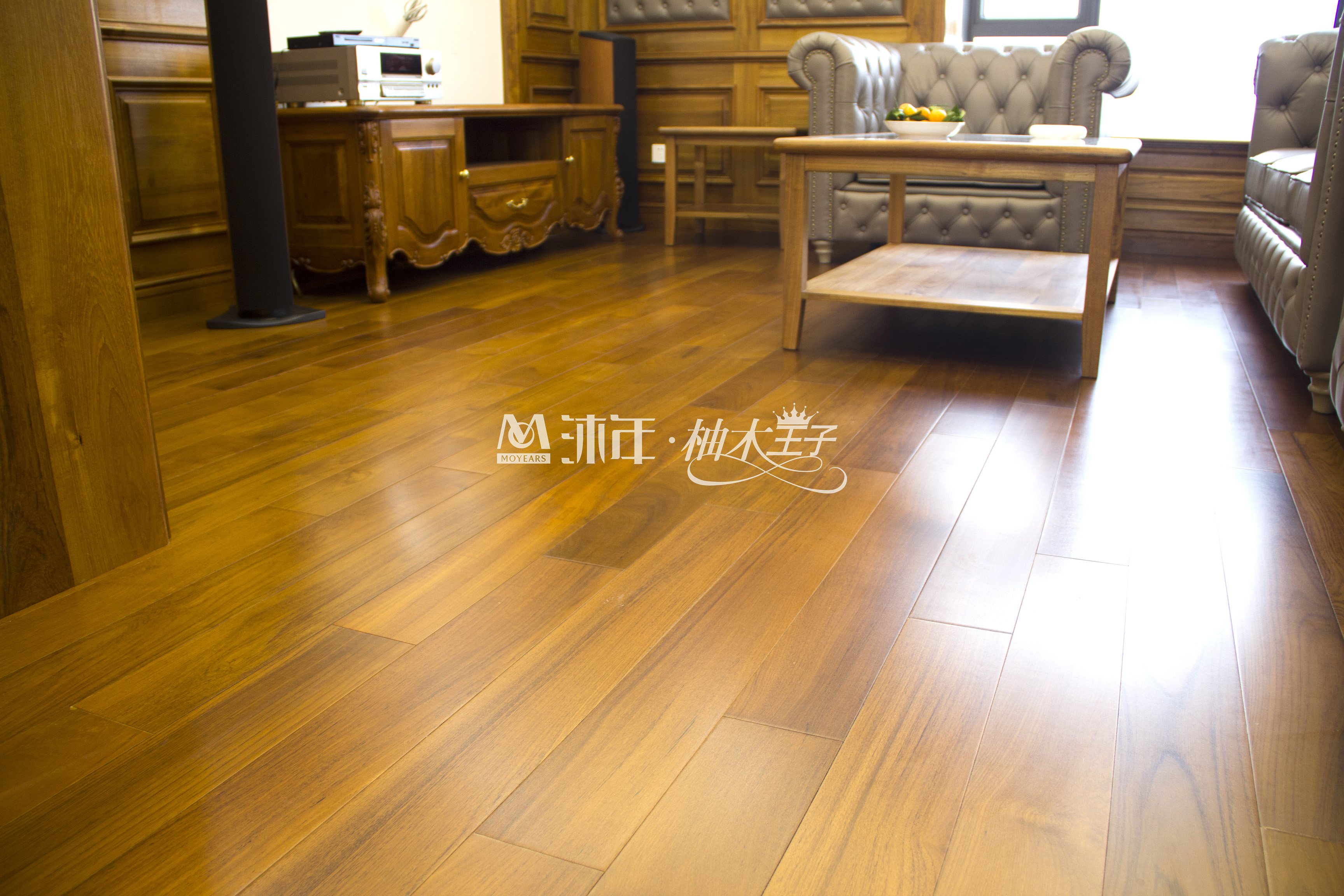 “締造經典 尊享自然”是沐年致力于柚木產品開發的核心理念,經典源于品質,沐年在以品質為第一標準的前題下,嚴把取材質量關,因此柚木王子地板的出材率僅占原材料的23%;自然貴在天然,在沐年柚木王子根據柚木本身天然的生長紋路,結合不同的取材方式將柚木的自然美展現的淋漓盡致,沐年柚木王子地板天然裸紋系列分為:三大色系、七大紋路,百余種規格;
